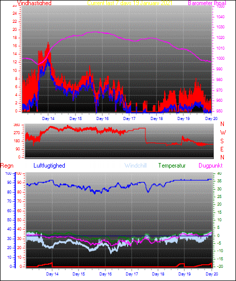 Record high average speed:15.0 m/s from 335o at: 23:50 on: 13 Jan 2021