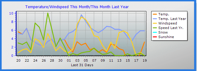Record high wind gust : 34.5 m/s from 00o at: 12:26 on: 20 Nov 2008